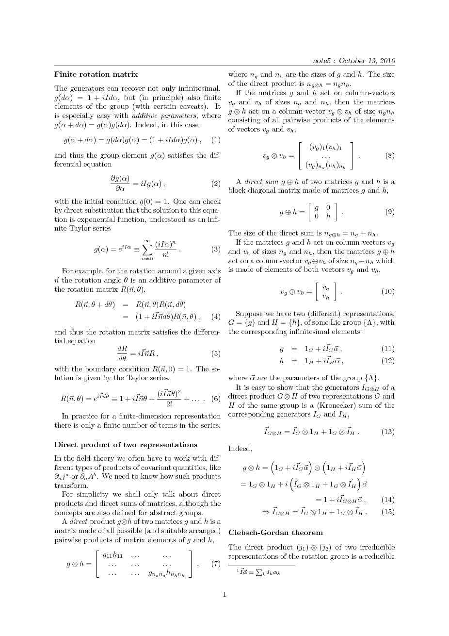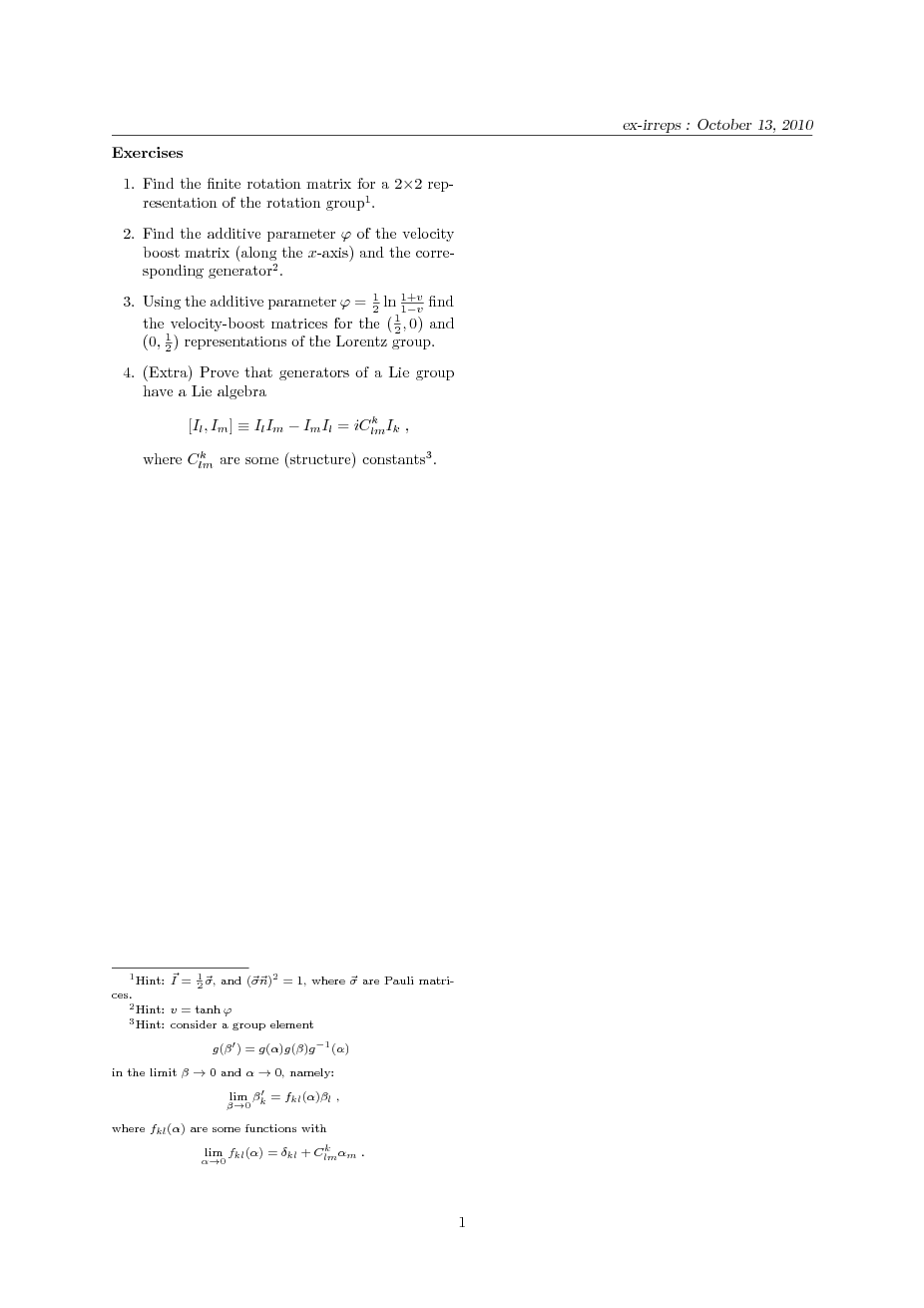 of the rotation group and the Lorentz group. Irreducible representations