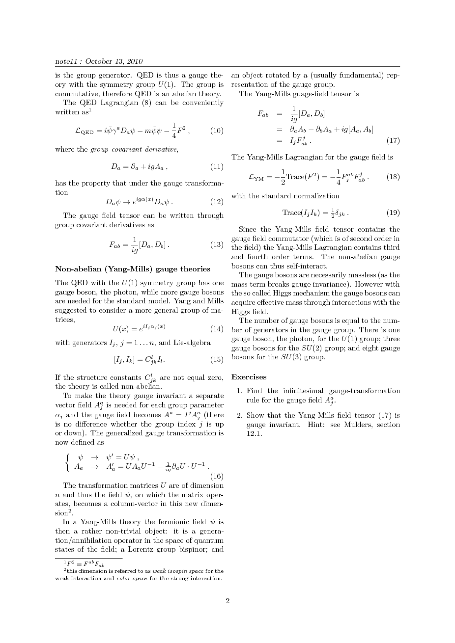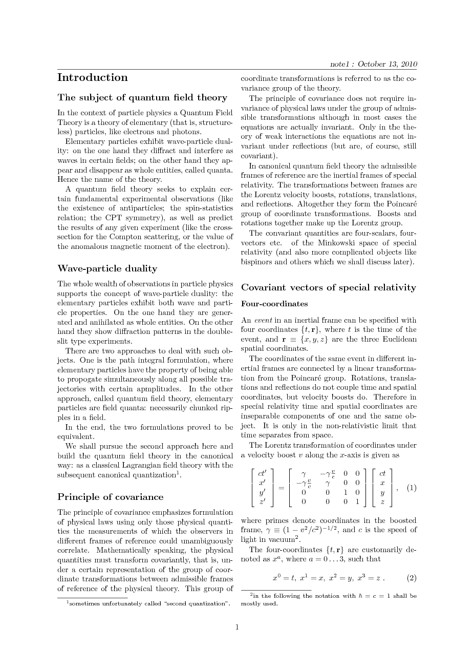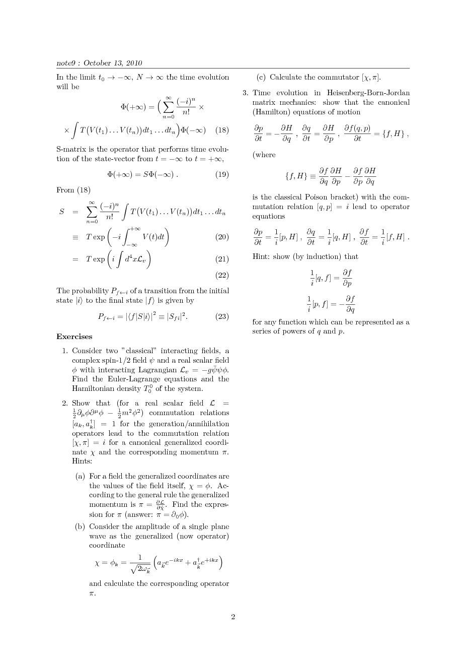 Introduction to Quantum Field Theory. Autumn 2010.