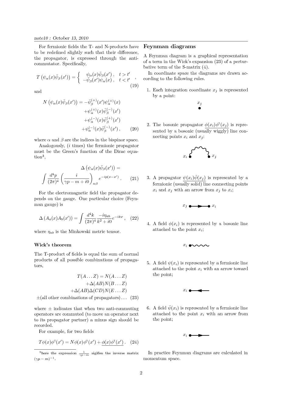 operators; propagators; Wick's theorem; Feynman diagrams in coordinate space.