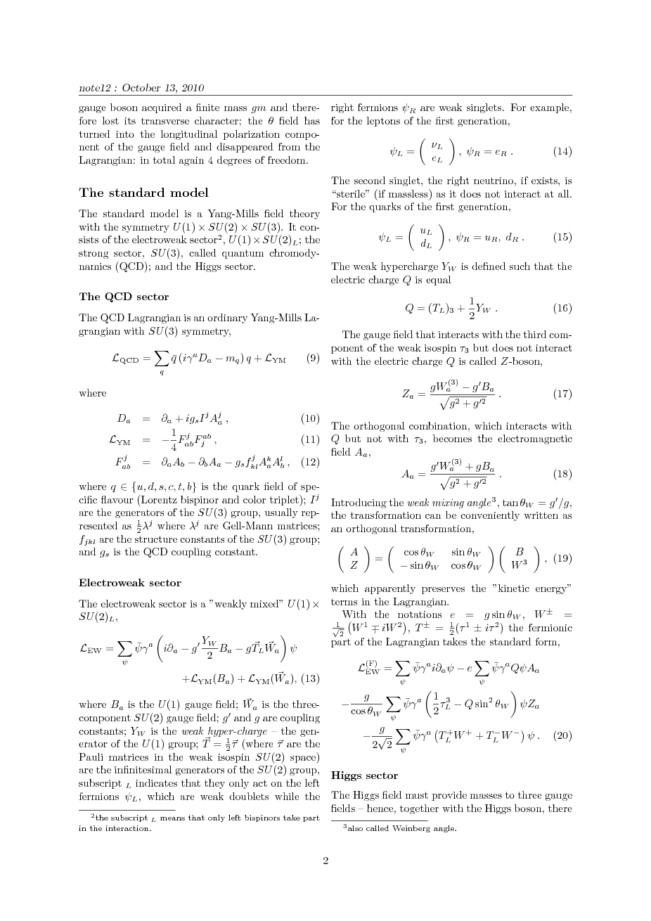Spontaneous symmetry breaking; The Higgs mechanism; The Standard Model.