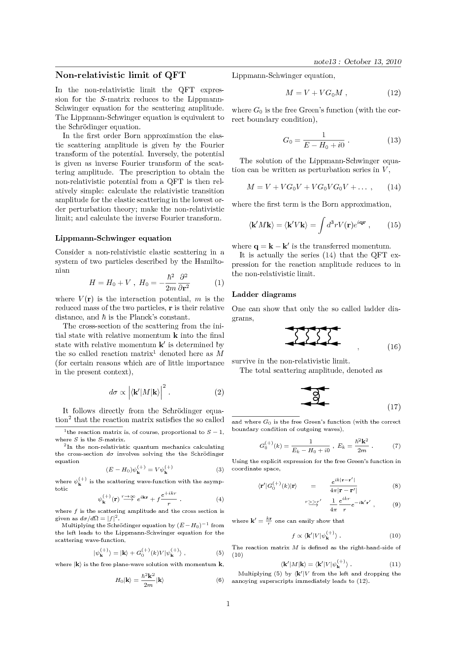 Lippmann-Schwinger equation; One boson