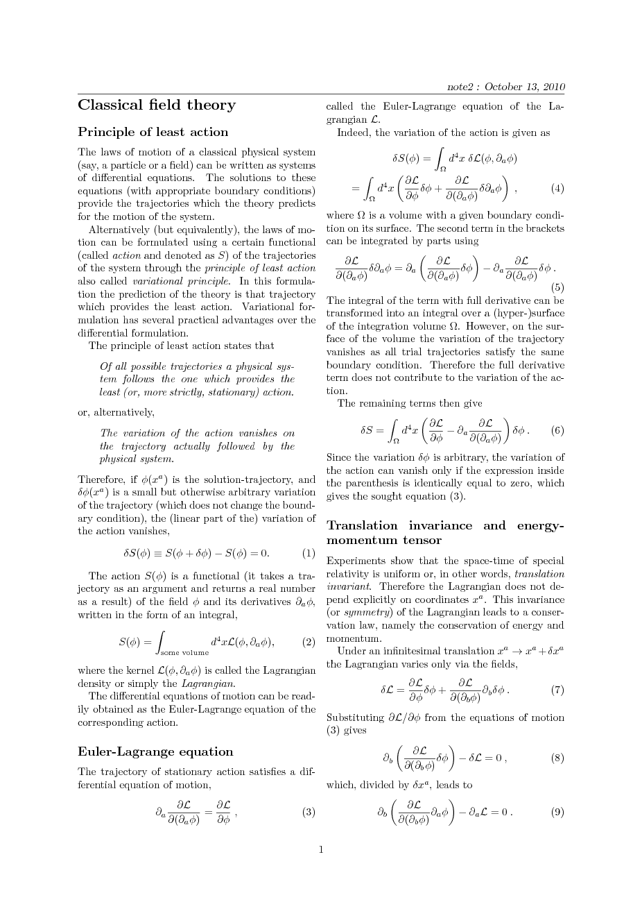 equation of motion. Translation invariance and energy-momentum tensor.