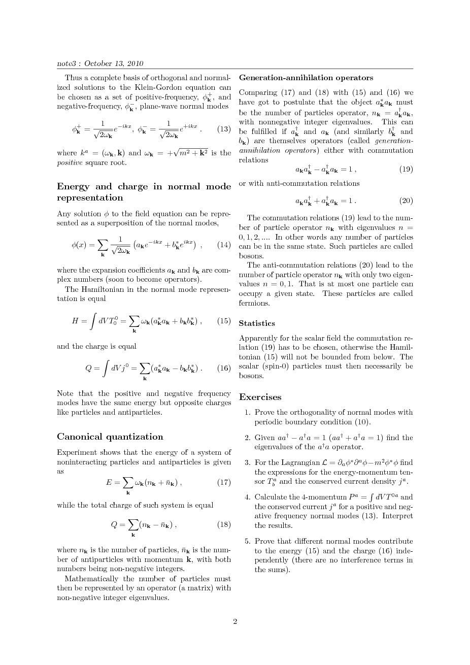 Canonical quantization of a complex scalar field.