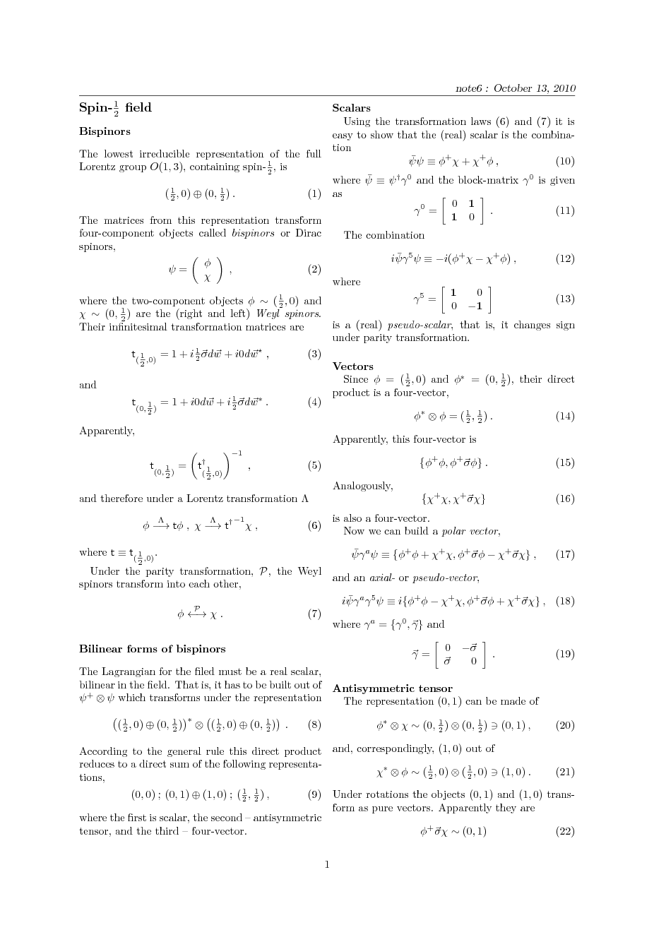 Irreducible representations of the Lorentz group.