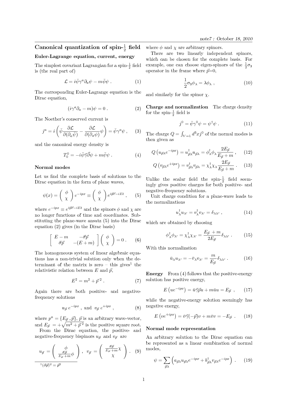 Canonical quantization of spin-1/2 field.