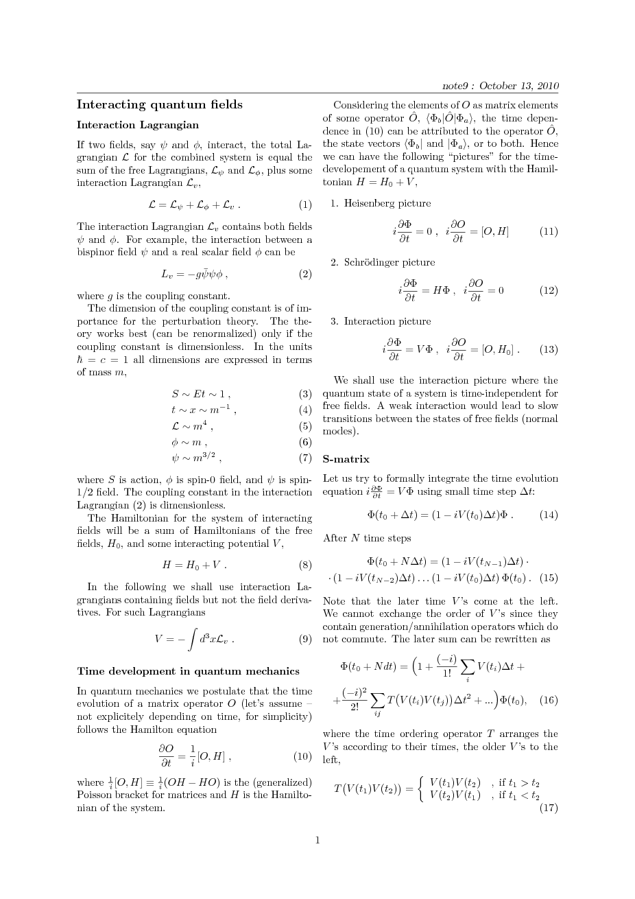 Interaction Lagrangian; Time development